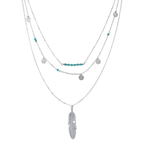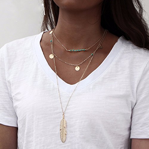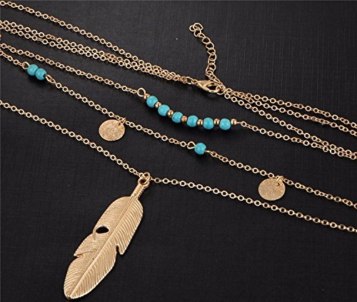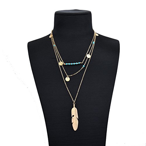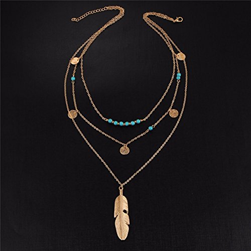 -. Title : Monily Vintage Bohemia Layer Necklace Coin Feather Pendent Statement Necklace for Women