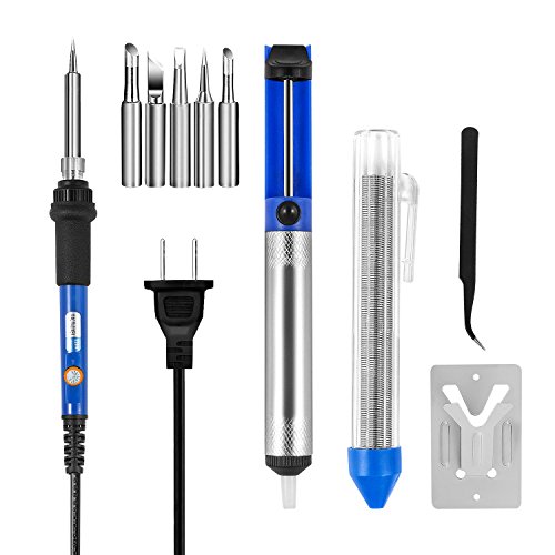 Soldering Iron Kit, Keten 60W Electric Welding Iron Kit, Adjustable Temperature, with 5pcs Different Tips, Disordering Pump, Stand, Solder Wire, Anti-static Tweezers for Variously Repaired Usage