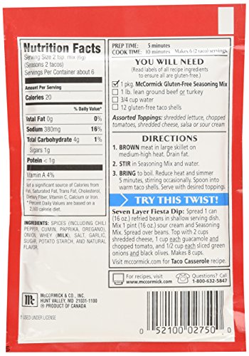 McCormick Gluten Free Taco Seasoning Mix (Pack of 4) 1.25 oz Packets