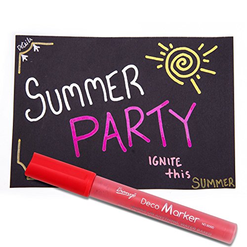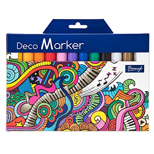 Bianyo Acrylic Paint Marker Pen - Fine Tip, 12 Colors - Deco Markers for DIY, Drawing, Coloring on Wood, Stones, Fabric, Glass, Ceramics