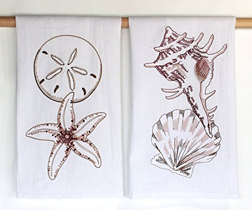 Seashell Duo Embroidered Flour Sack Kitchen Towels by C & F - Set of 2