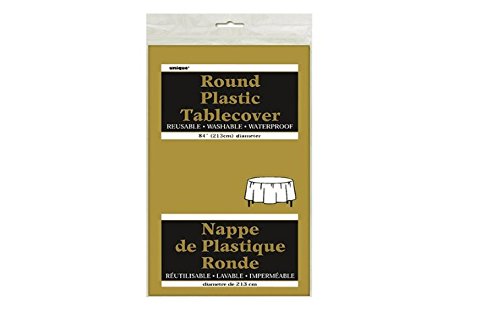 Mini Ware Plastic Disposable Angled Cup Clear - 10 Count and Gold Plastic Round Table Cover