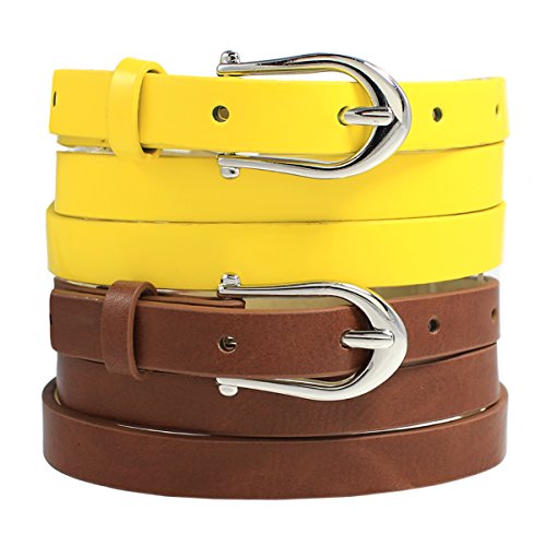 -. Title : Style & Co. Women's Set of 2 Patent Skinny Belt, Brown/Yellow (X-Large)