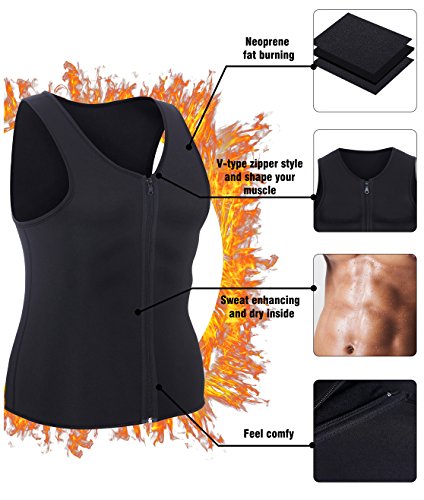 -. Feature : Function & Effects: Flatten abdomen, more sweat out when exercise, crazy sweat in the hot, protecting spine, muscle training / PROMOTES BODY HEAT: Neoprene makes you sweat like there is no tomorrow. Design to make you Sweat like crazy and enhance your workout to achieve your weight loss goals. / Neoprene training vest could be worn under or over your regular shirts, ideal for gym ready, fat burner, waist trainer and muscle building / Zip closure, Keep Your Muscles Warm, Improve Your Posture, Stabilize Spine. Provides Therapeutic Support that Helps Prevent a Herniated Disc, Lumber Muscle Strain, Back Pain
