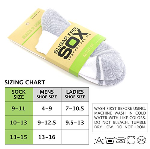 Studio : Sugar Free Sox Publisher : Sugar Free Sox Binding : Health and Beauty Product Description Includes 3 Pairs of White Ankle Sox Size 13-16. The story behind Sugar Free Sox, begins with our simple belief that everyone should be comfy in their socks- whether you're soothing sensitive feet, avoiding the dreaded sock ring imprint, or seeking circulatory relief...Sugar Free Sox has go your feet covered. WE'RE ALL FOR COMFORT COMFORT FOR ALL! Fits men shoe sizes 13-16 86% Polyster/ 12% Nylon/ 2% Spandex 0