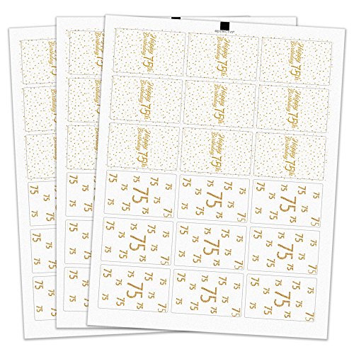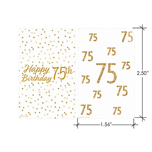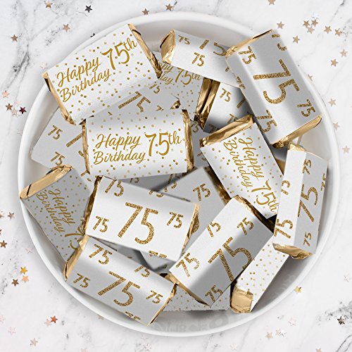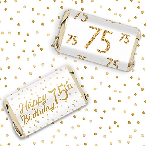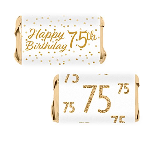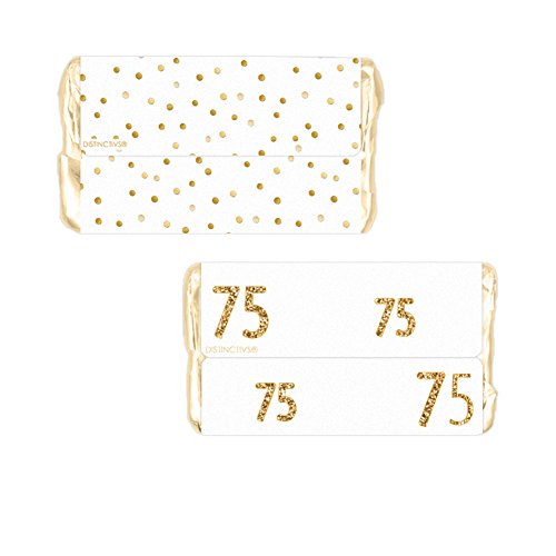 75th Birthday Party Miniatures Candy Bar Wrapper Stickers - White and Gold (54 Count)