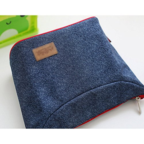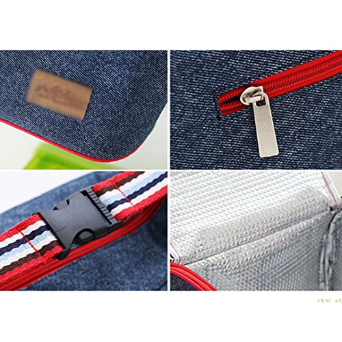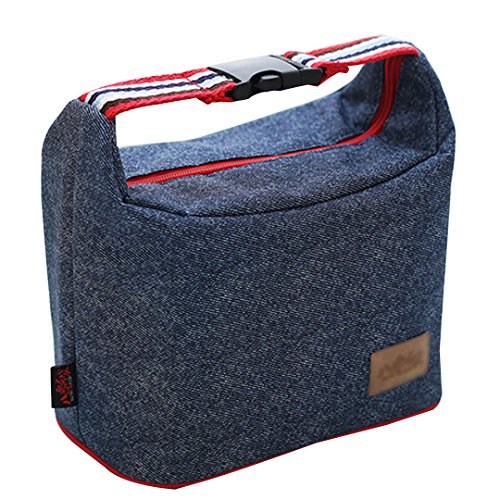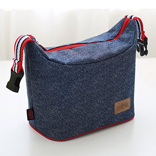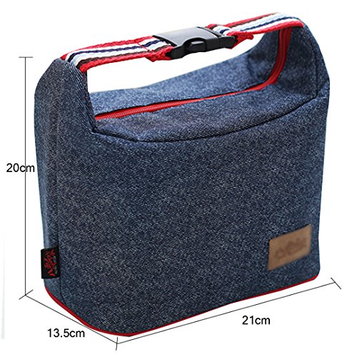 Monique Women Men Oxford Lunch Bag Lunch Handbag Tote Insulated Cooler Picnic Bag Clutch for School Office Outdoor Travel Denim Blue1