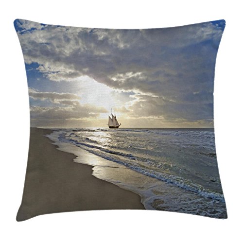 (Ambesonne)/Bedding Bath/Bedding/DIRECT FROM USA/Nautical Throw Pillow Cushion Cover by Ambesonne, A Sailing Ship Close to Sandy Beach in Moody ...
