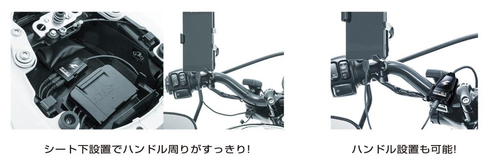 Especially, if the main body is set under the seat, using one optional "5 V extension cable", take out one around the handle, the circumference of the handle is refreshing! Attractiveness of the car is not damaged.