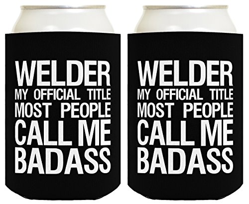 Funny Beer Coolie Badass Welder Gift 2 Pack Can Coolies Drink Coolers Black