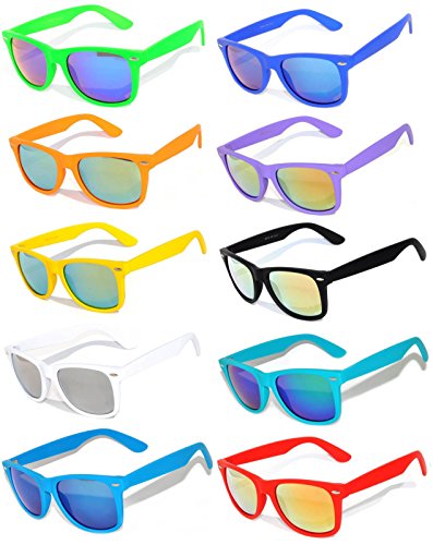 10 Ten Classic Vintage Full Mirror Lens Sunglasses Colored Frame Matte Retro (10pairs, Mirror)