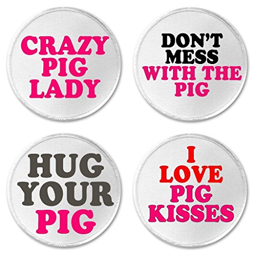 (AT Designs)/Accessories/Scarves/DIRECT FROM USA/AT Designs Set 4 Crazy Pig Lady Hug Love Kiss Humor 3" Sew On Patches