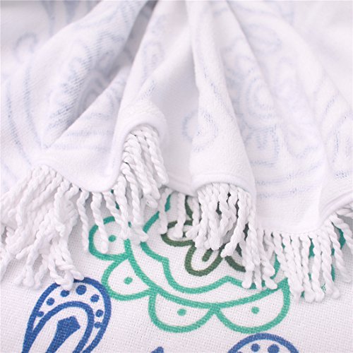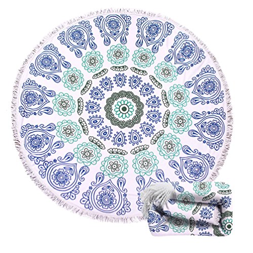 BEACH TOWEL FOR TWO PERSONS: Diameter is about 60” with tassels, the size can for 2 persons comfortably. With our round, XL oversized towel, you have room to snuggle up with your families and pets.