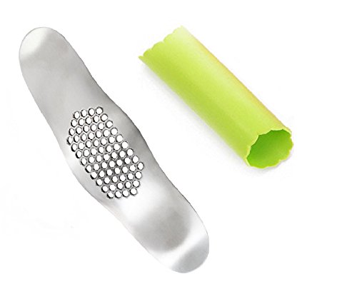 Sfb Stainless steel Garlic Press and Silicone Tube Roll Peeler Set