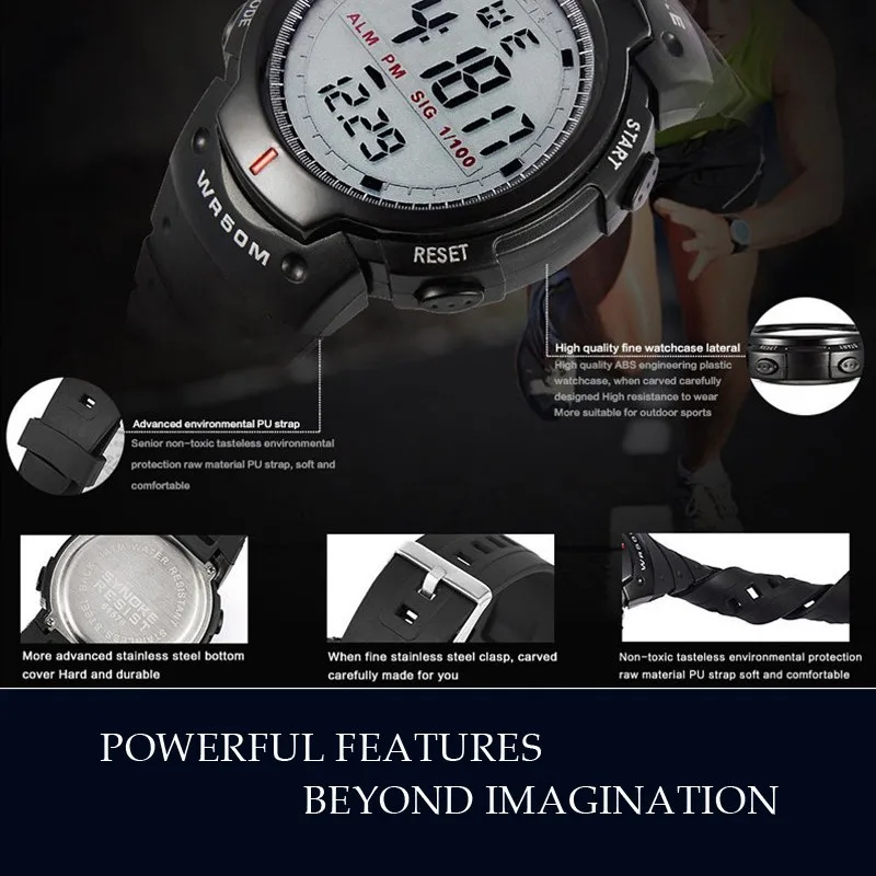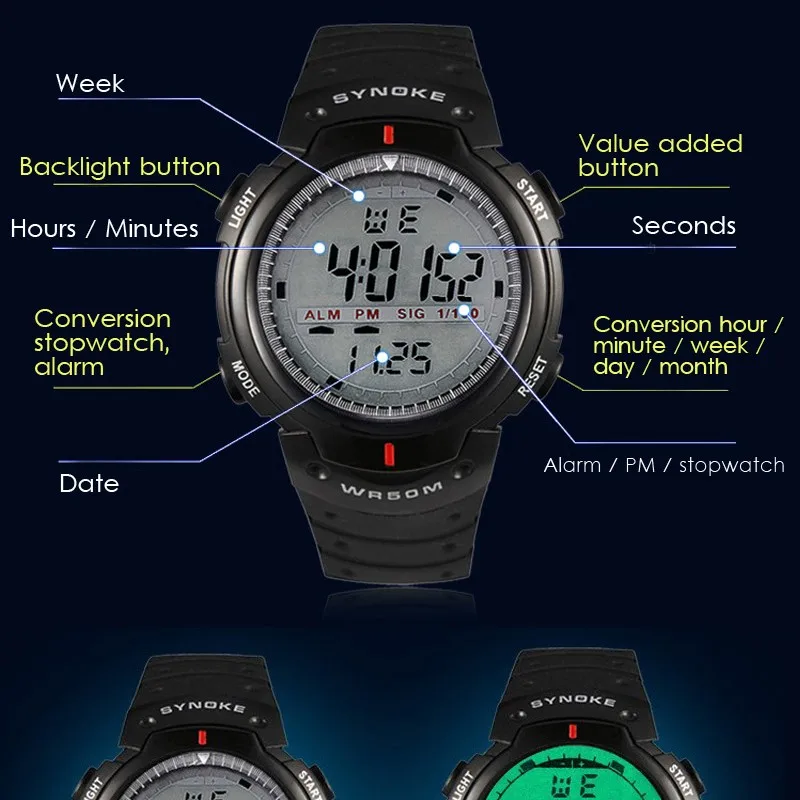 Feature:Water Resistant,LED display,Stop Watch,Auto Date,Complete Calendar,Week Display,Alarm,Chronograph,Repeater