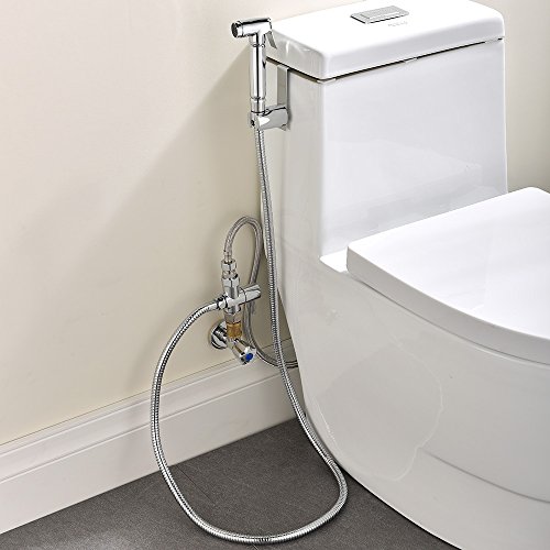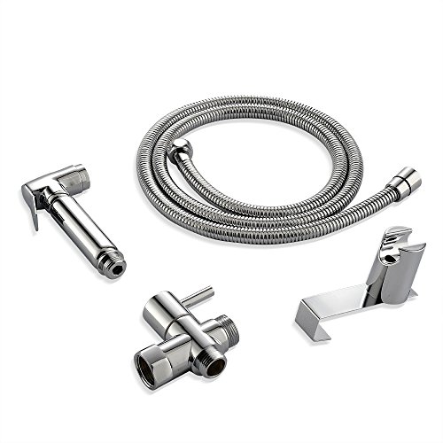 VESLA HOME Premium Hand-held Toilet Bidet Sprayer, Chrome Finshed Bathroom Spray Bidet with T-Adapter Valve, 49 Inch Hose and Mounting Clip Adapter