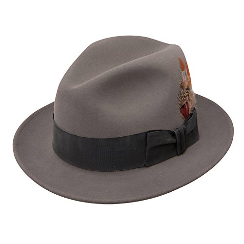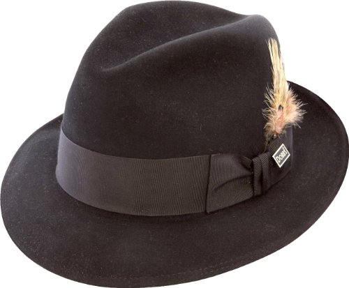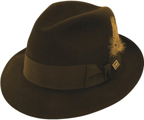 Studio : Dobbs Publisher : Dobbs Binding : Apparel Product Description You'll be dressed for success with the iconic Dobbs Dayton. This classic center-dent fur felt hat features a stylish 2" underhem snap brim and a wide dress band that signifies a modern air that establishes its owner as a man about town. Depending on your look, the feather and pin are removable. The satin lining helps keep the hat comfortable when perched up top. 0