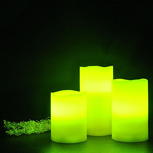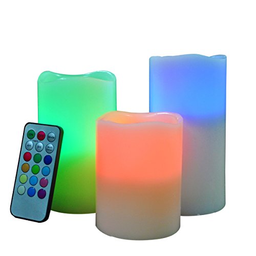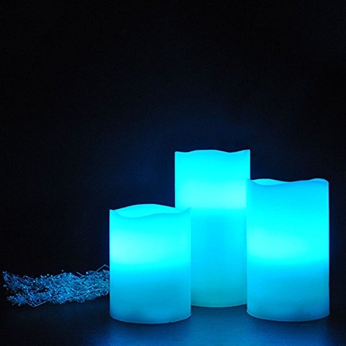 GREAT WORK PERFORMANCE -- This set of 3 battery operated flameless candles with one remote control can change color automatically and light up the whole interior space with gorgeous light.Perfect for Wedding, Halloween Parties or other occasions.