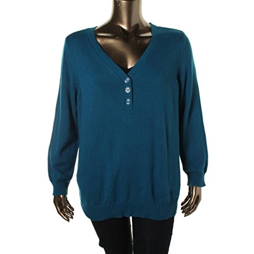 This feminine button detailed sweater features a V-Neck and pullover style.
