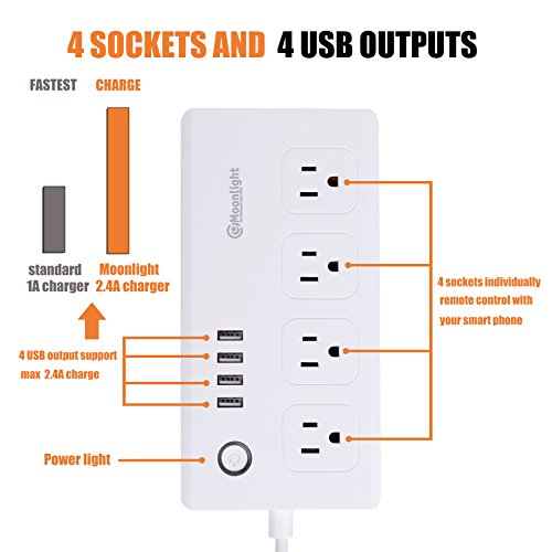 - •✅ MULTI SMART OUTLETS: Equipped with 4 AC Outlets, 4 USB ports and 5-foot long extension cord, to meet your daily need. ETL and FCC certification. You can control 4 sockets individually with your smart phone wherever you are, but note that the 4 USB charging ports can only be controlled together.