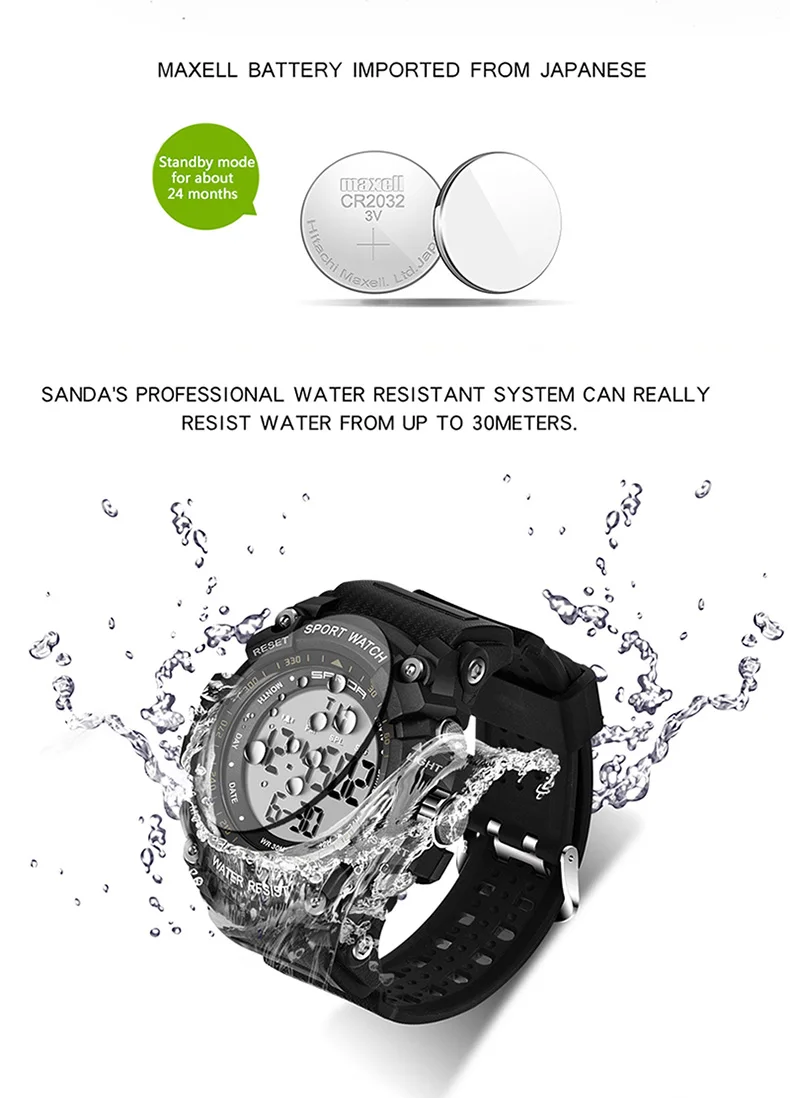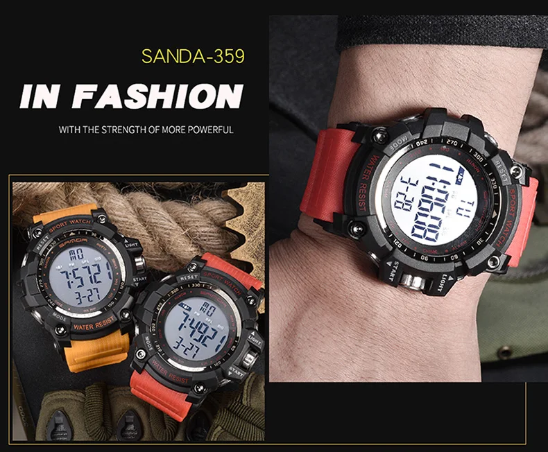 Feature:Chronograph,Alarm,Auto Date,Stop Watch,Complete Calendar,LED display,Shock Resistant,Water Resistant,Back Light