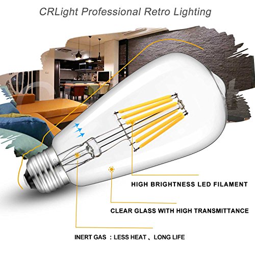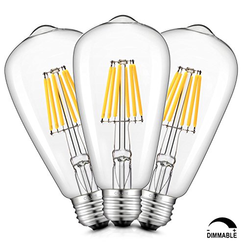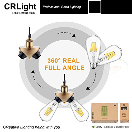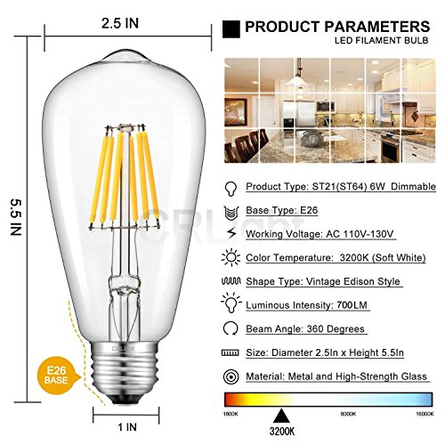 CRLight LED Edison Bulb 6W Dimmable 3200K Soft White 700LM, 70W Equivalent E26 Medium Base, ST21(ST64) Vintage LED Filament Bulbs, 360 Degrees Beam Angle, Pack of 3