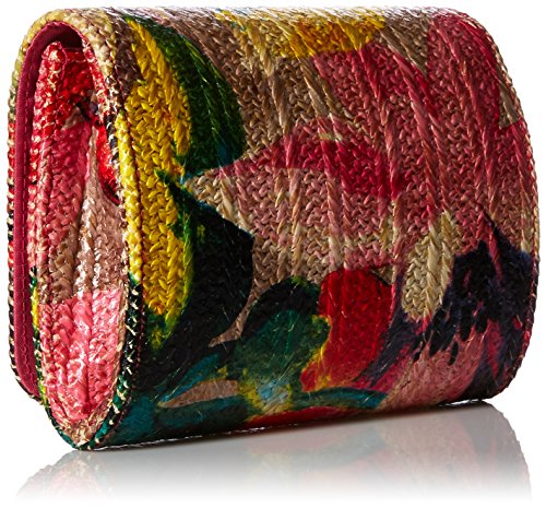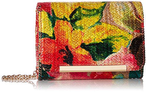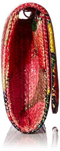 -. Feature : Straw floral P.R.Int shoulder bag / Magnetic snap closure / Bar detailing on flap / Drop in chain strap / Interior features back wall slip pocket