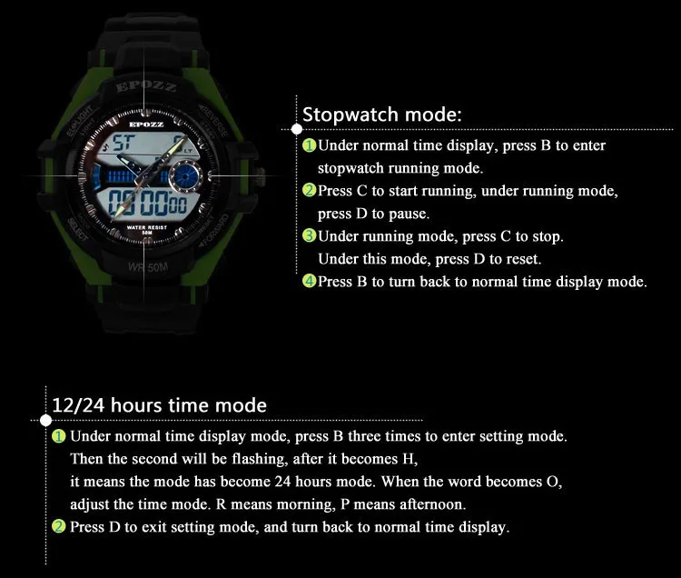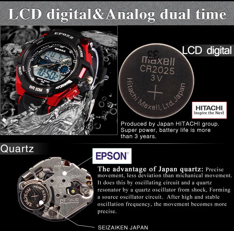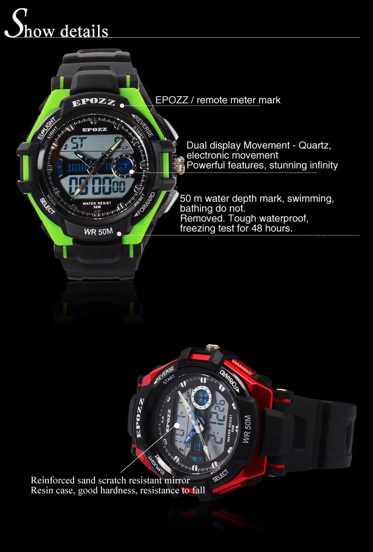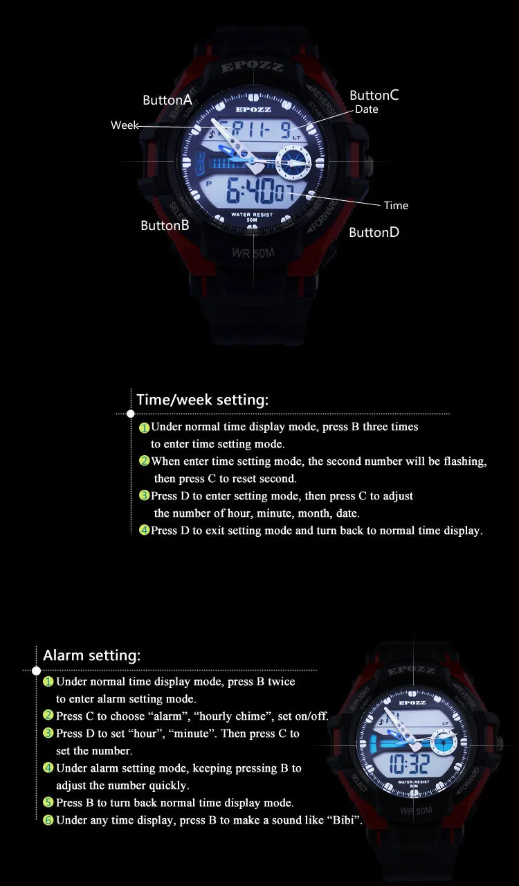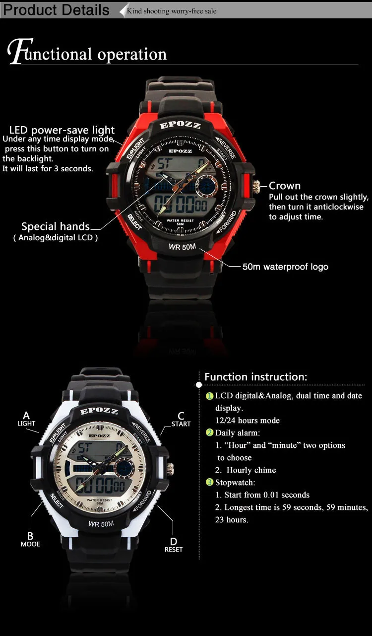 Feature:Back Light,Alarm,Water Resistant,Stop Watch,Complete Calendar