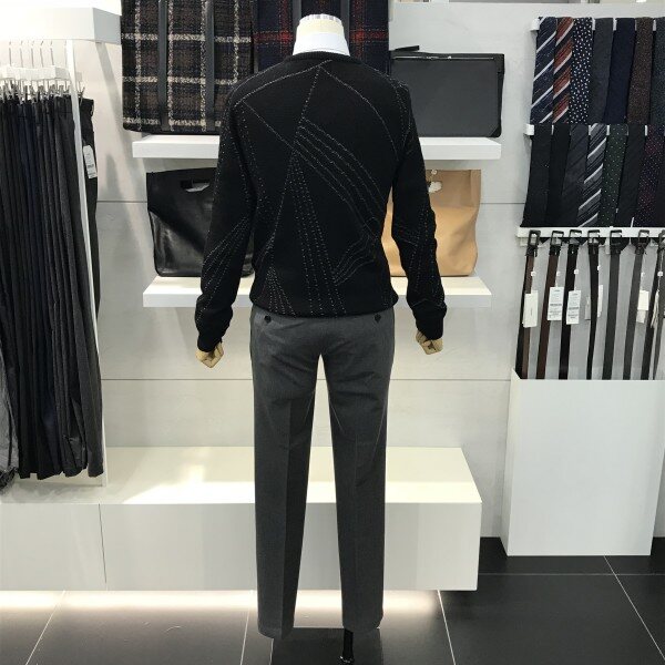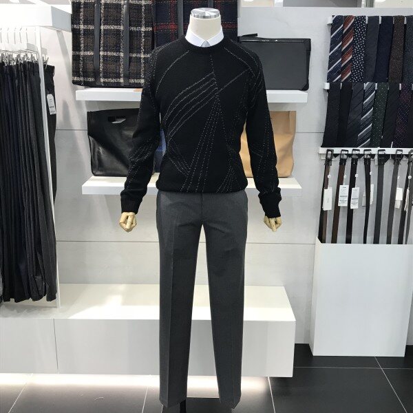 레이온 혼용 원단을 사용하여 촉감이 부드럽고 신축성이 좋습니다.불규칙 사선 패턴이 밋밋할 수 있는 블랙 니트에 완벽한 포인트를 주었습니다 ^^