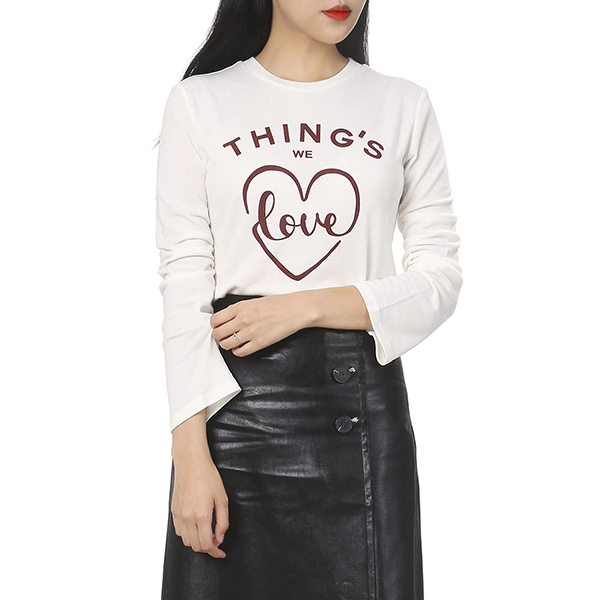 아이보리 컬러에 THING`S WE LOVE 레터링 장식으로 포인트를 준 티셔츠 입니다. 심플하고 베이직함이 매력적인 아이템 입니다.