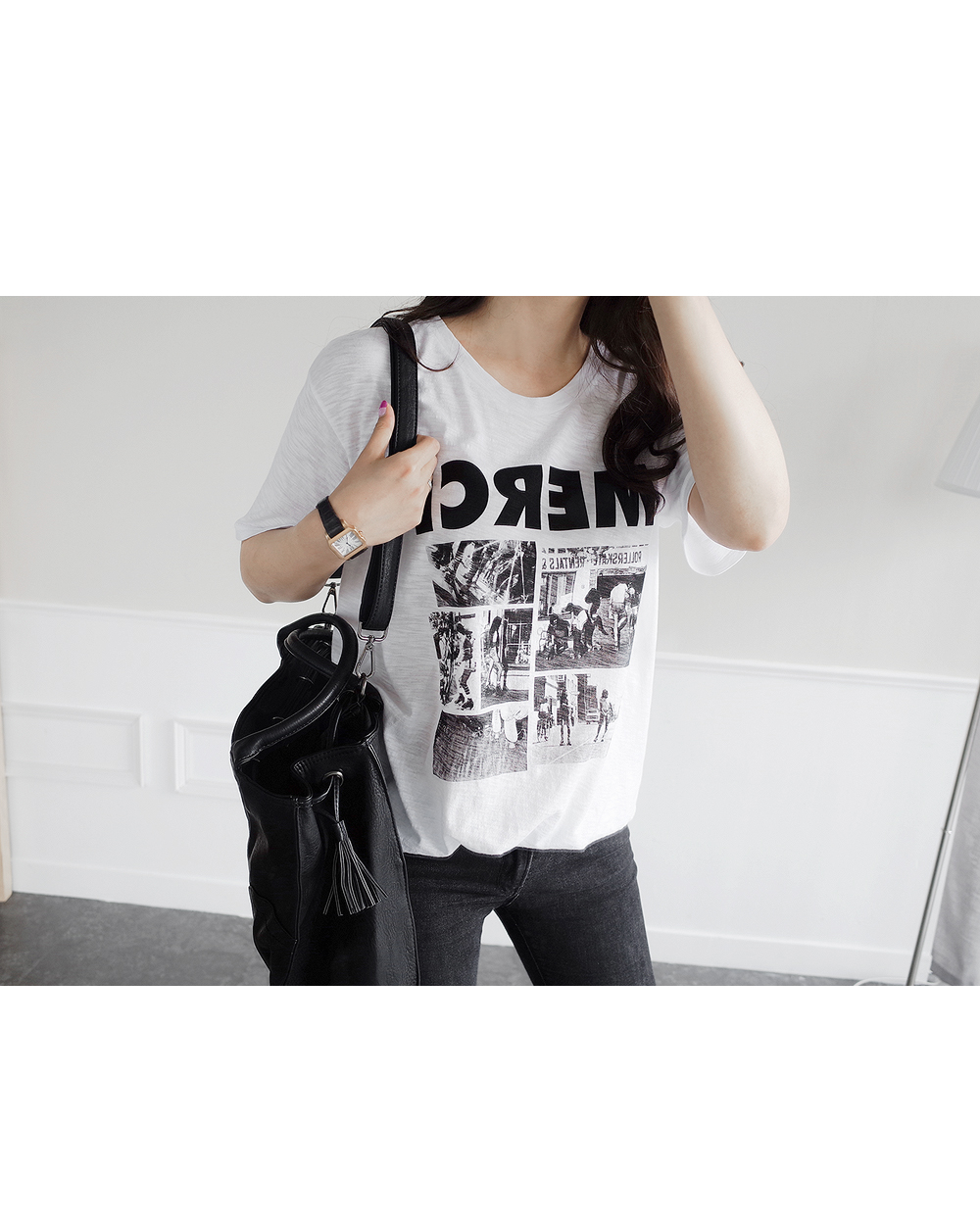 코디컷과 같이 데일리한 팬츠와 티셔츠 매칭으로
