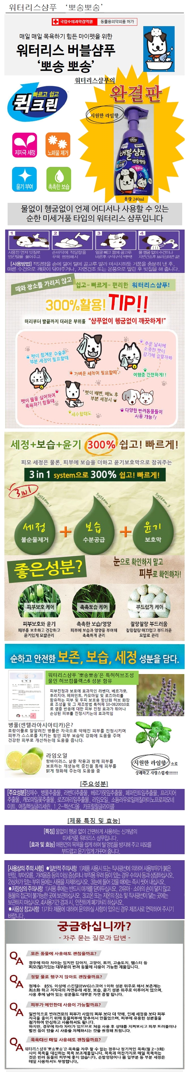 Pet bottle waterless bubble 240ml pet bath pet dog shampoo