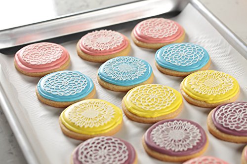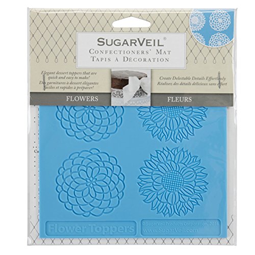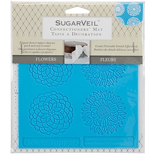 Studio : SugarVeil Publisher : SugarVeil Binding : Kitchen Product Description SugarVeil Confectioners' Mats make it easy to create delectable details on cakes, cupcakes, cookies and more. These patented high-quality silicone molding mats create intricately detailed designs with SugarVeil Confectionery Icing; simply smooth the icing onto the mat and allow to set, then peel and place for professional-looking confectionery masterpieces that absolutely anyone can achieve. The mats can even be placed in a 200F oven to speed the icing set process, and are reusable so you can enjoy making countless creations with them. This 5.75" x 5.75" mat features four total flowers with two of each design so you can create a delectable floral garden on cupcakes, cookies and more. 0