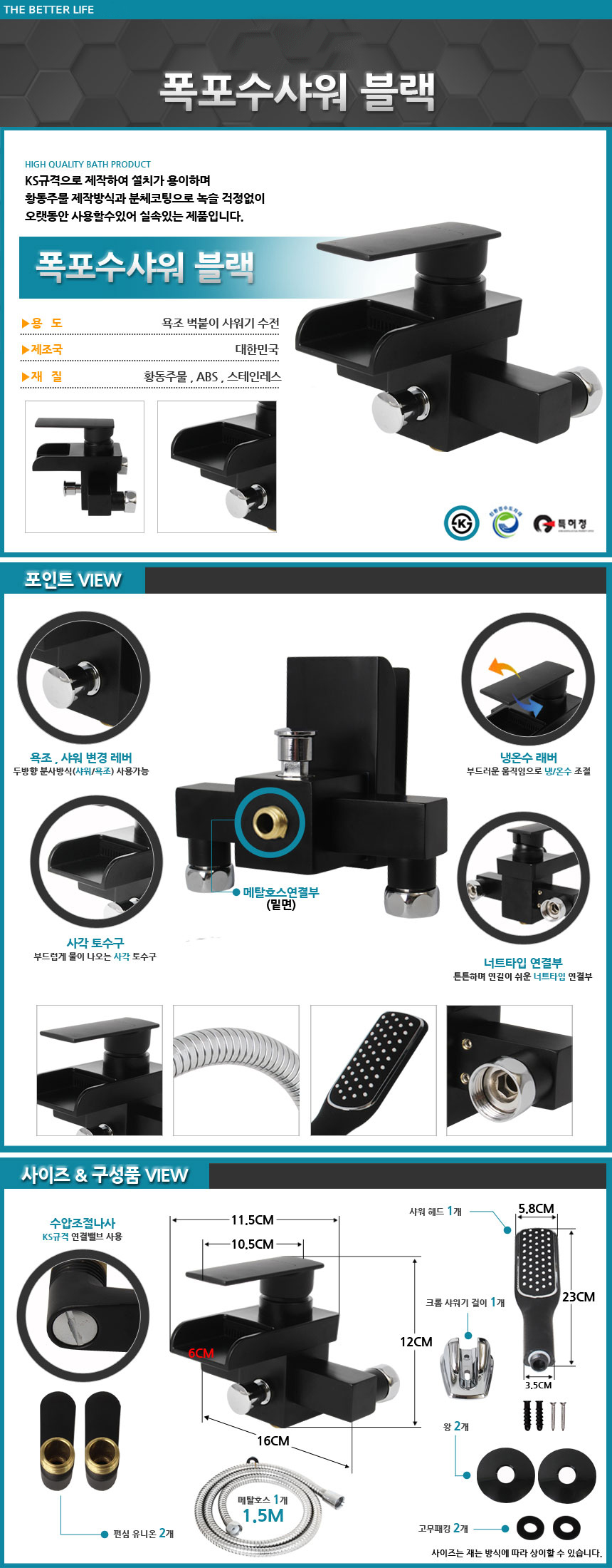 Black faucet faucet bathroom accessories waterfall shower