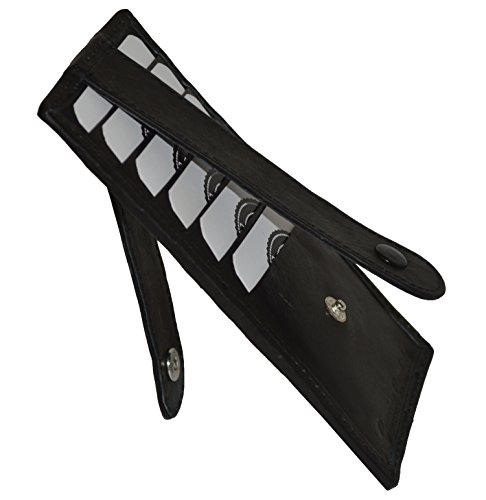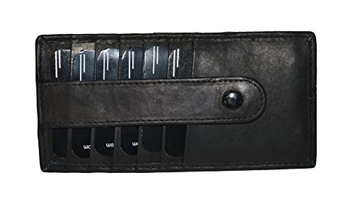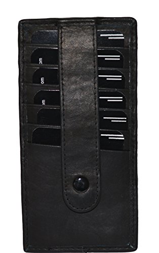 -. Binding : Apparel -. Brand : LeatherBoss -. Color : Black -. Department : mens -. Feature : Made of Genuine High Quality Leather / 6 Credit Card slots on each side / Very Secure - Snap closure on both side / Very safe and secure wallet / Makes a great gift. -. Model : 168b -. ProductGroup : Apparel -. ProductTypeName : ACCESSORY -. Size : 5.7/8" X 2.7/8" -. Title : Secured Card Holder Wallet with Snaps On Both Sides