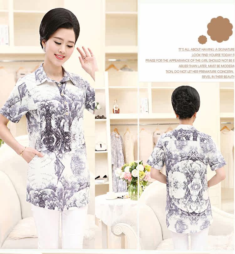 中老年女装夏装短袖T恤中年人女装夏季上衣50-60岁妈妈装夏装T恤