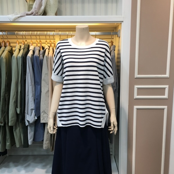 밑단 언발란스 형식의 스트라이프 니트입니다