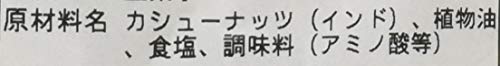 原材料:カシューナッツ(インド)、植物油、食塩、調味料(アミノ酸等)