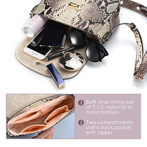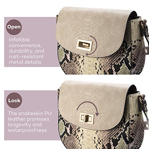 Multipurpose & Ideal Gift The practical size paired with the large capacity transforms this hand bag into your best accomplice for any situation. Take it shopping with you, on your hiking trip, or make it your everyday bag. The Sable Faux Snake Skin bag also makes for the perfect gift for your best friend, mum, sister, or any stylish woman in your life.