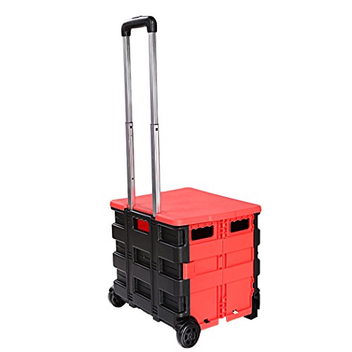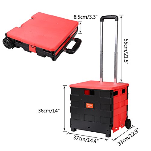 Binxin Folding Two-Wheeled Hand Cart Plastic Hefty Heavy Carry Utility 55lb Capacity Durable Lightweight with Cover Portable for Shopping