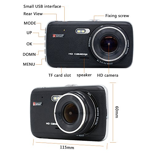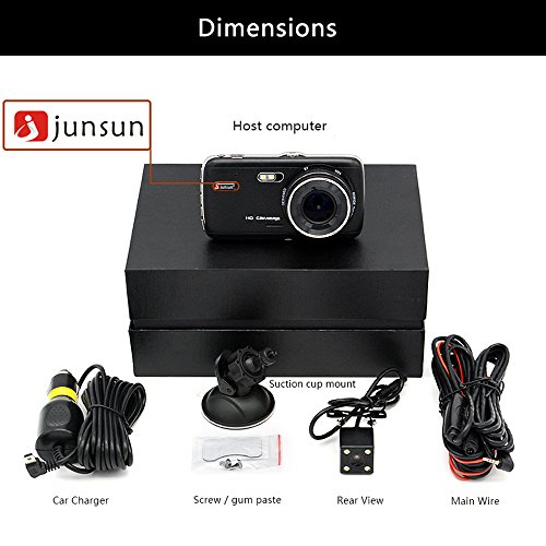 -. Title : junsun Car Camera Full HD 1296P DVR Dual Lens Dash Cam Recorder Video Camcorder Dual Camera Night Vision Black Box