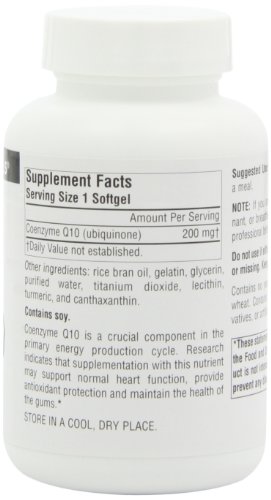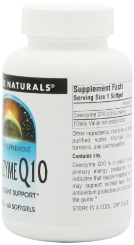 ReleaseDate : 2006-06-21 Studio : Source Naturals Publisher : Source Naturals Binding : Health and Beauty Product Description Dietary supplement. Antioxidant support. Coenzyme Q10 is a crucial component in the energy production cycle. Research indicates that supplementation with this nutrient may support normal heart function, provide antioxidant protection and maintain the health of the gums (These statements have not been evaluated by the Food and Drug Administration. This product is not intended to diagnose, treat, cure or prevent any disease). Contains no yeast, dairy, egg, gluten, corn, or wheat. Contains no sugar, starch, salt, preservatives or artificial color, flavor or fragrance. 0