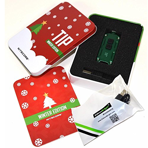 Nitecore TIP holiday edition Red/Green 360 lumen USB rechargeable keychain flashlight with EdisonBright brand USB charging cable