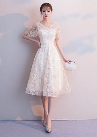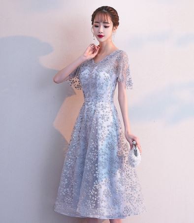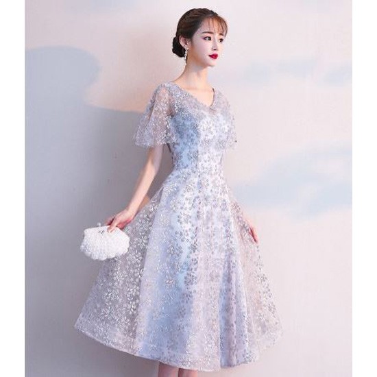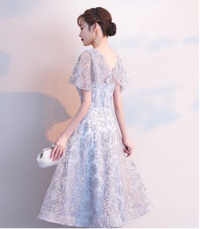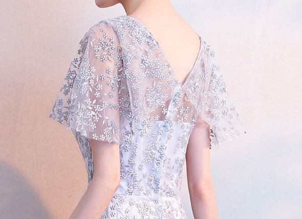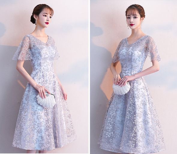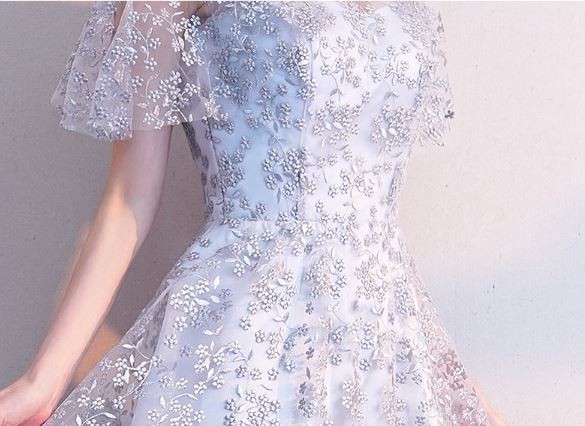 お花モチーフのレース使いが華やかなパーティードレスです。