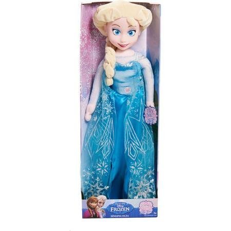 -. Feature : Soft plush body / Vinyl face / Sings the hit song "Let it Go" / Materials: 85% polyester fiber, 10% polypropylene and 5% electronic components / Frozen singing doll, Elsa, comes dressed in her iconic blue and silver gown