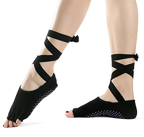 -. Feature : Ultimate Comfort-Made of 95% Breathable high quality cotton.Easily absorb and evaporate sweat,keeping your feet dry.Barrier between foot and equipment protects feet from unwanted dirt and germs / Featured Silk Ribbon Design -The Elastic silk ribbon tie makes Non-slip,Non-drop and not too tight.The elegant bands design will make you look unique in the class / Non-Slip Soft Silicone Dot Sole from heel to toe that offers better grip for improved stability & balance so that you can stay safe,avoid injuries and have better control of your body movements / Five-Toe Open Design- The unique five-toe open toe separation design can spread and free transfer,can increase the flexibility of your toes,also increase the friction between the five toe and the ground,play a non-slip effect / Ideal for not only yoga,but also pilates, barre,bikram and ballet dance.Perfect for home,travel,studio and hospital use too.For Women Size 5-9