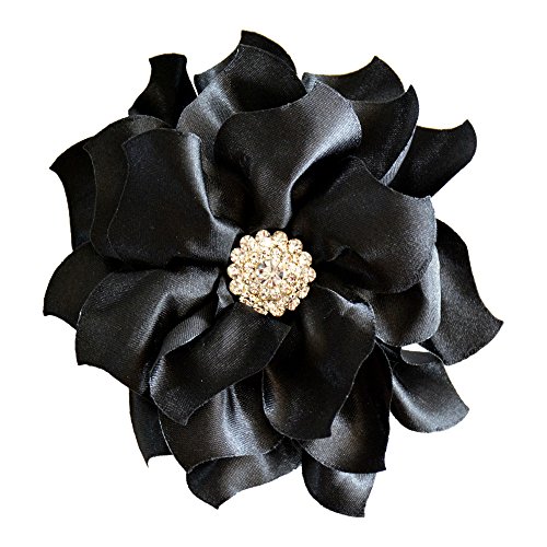 Satin flower measures approx. 4", and is attached to double prong alligator clip.