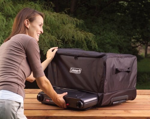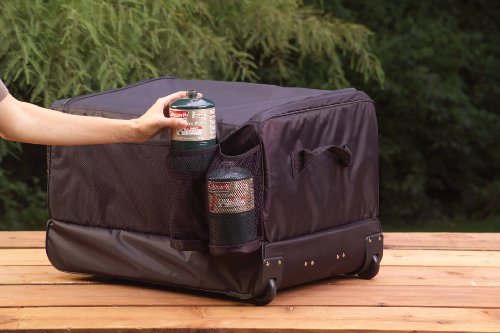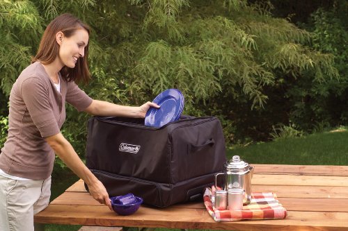 -. Feature : Size: 23-Inch length x 14-Inch width x 17-Inch height / Multiple pockets and compartments / Wheels and retractable handle for easy pulling / Bottom stove compartment holds and protects most Coleman stoves / Durable 600D polyester construction