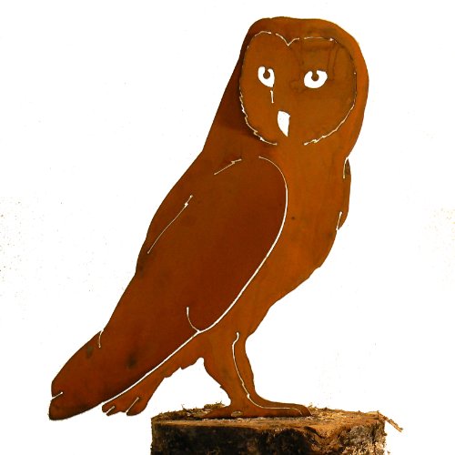 Elegant Garden Design Barn Owl, Steel Silhouette with Rusty Patina