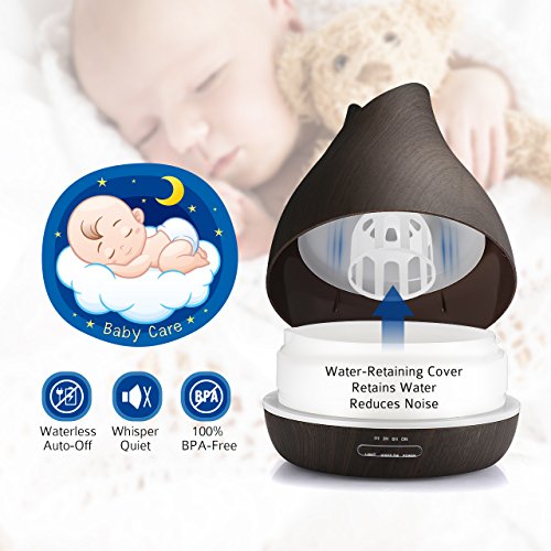VicTsing 500ml Essential Oil Diffuser, Reduce Noise Design - Quieter, Longer Mist Output Time 7-14 Hours Ultrasonic Aroma Diffuser with Waterless Auto-off, 7-Color LED Soft Light for Home, Office